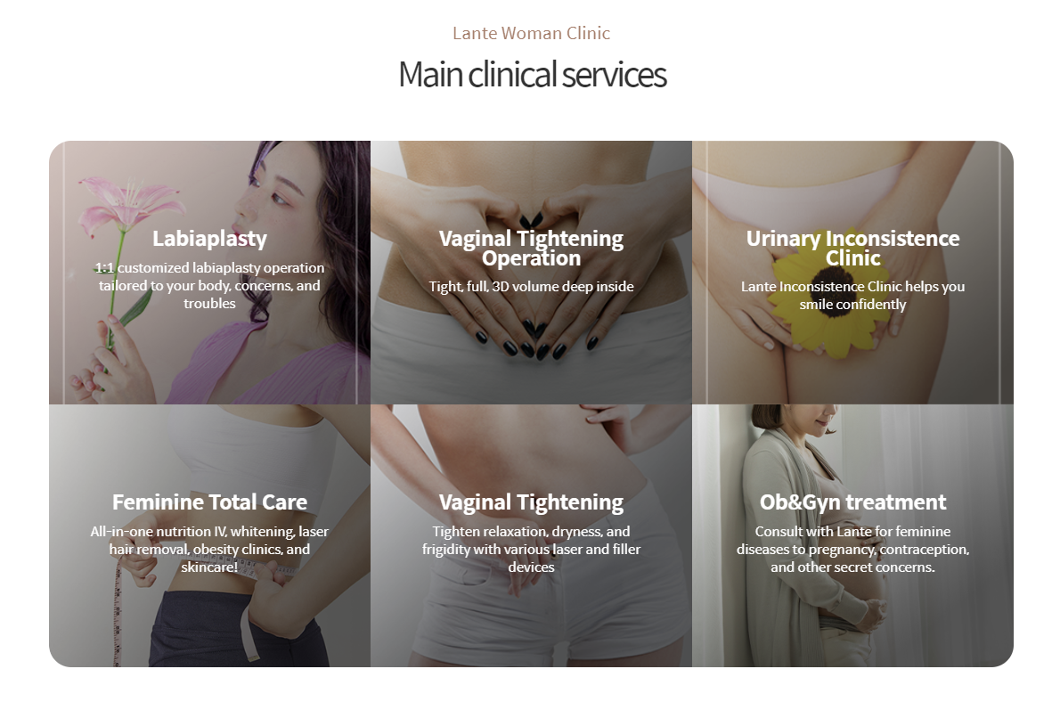 Lante OBGYN Gangnam is a trusted women's health center located in the heart of Gangnam, Seoul. We provide both surgical and non-surgical gynecological care in a comfortable, English-speaking environment specifically tailored for international residents. Staffed by experienced female doctors and compassionate medical professionals, Lante OBGYN is dedicated to meeting the unique needs of women with personalized attention and advanced medical solutions.